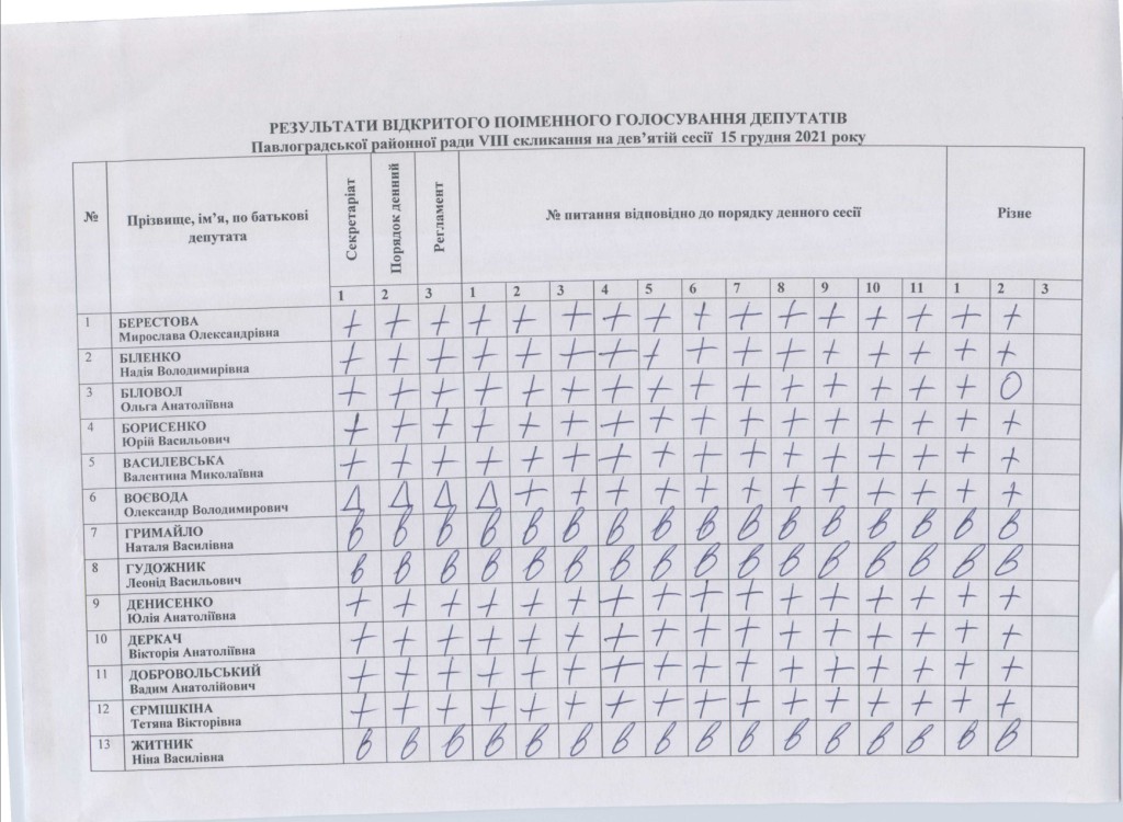 Результати відкритого поіменного голосування депутатів районної ради